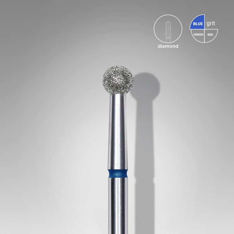 • Sphère bleue possédant un grain abrasif moyen de 120 et convient au traitement polyvalent de la peau et des ongles naturels.