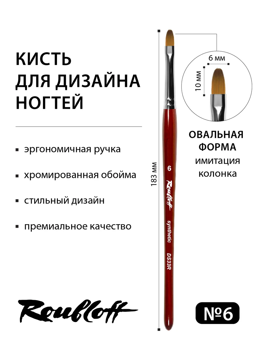 Le pinceau ovale Roubloff GC33 taille 6 est idéal pour la conception, l’application et le modelage de gels professionnels.