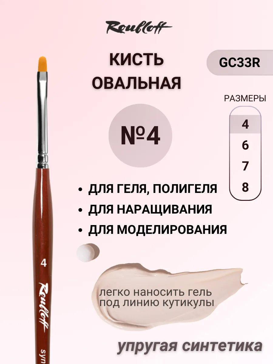 Le pinceau ovale Roubloff GC33 taille 4 est idéal pour la conception, l’application et le modelage de gels professionnels.