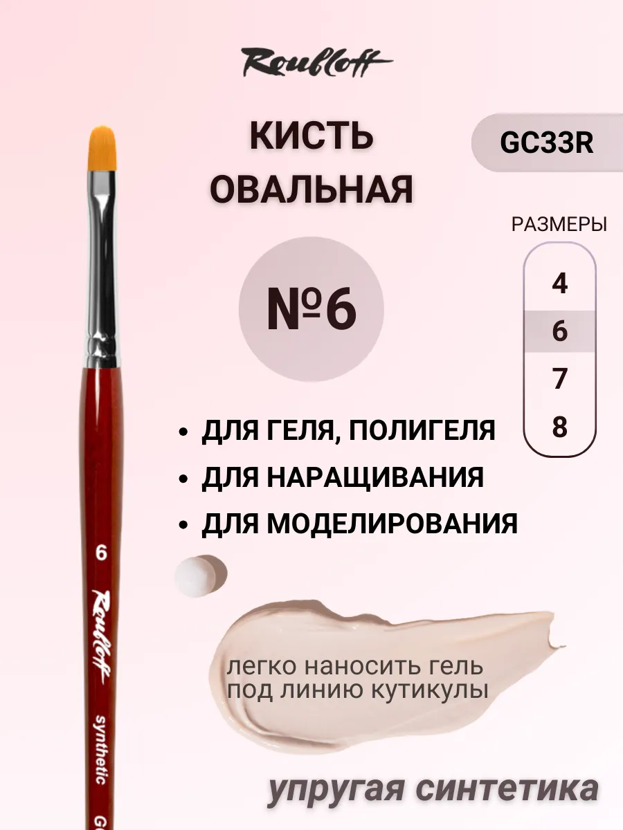 Le pinceau ovale Roubloff GC33 taille 6 est idéal pour la conception, l’application et le modelage de gels professionnels.